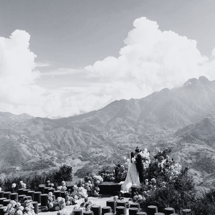 A romantic Sapa wedding set 1,600 meters above sea level, where sweeping mountain views and misty highlands create an unforgettable celebration for couples seeking a Vietnam destination wedding.