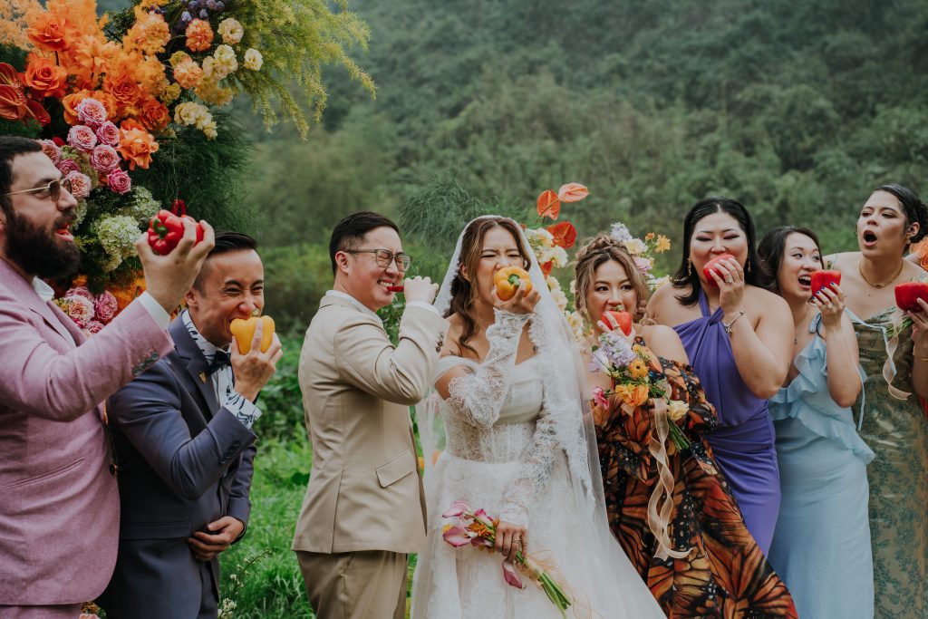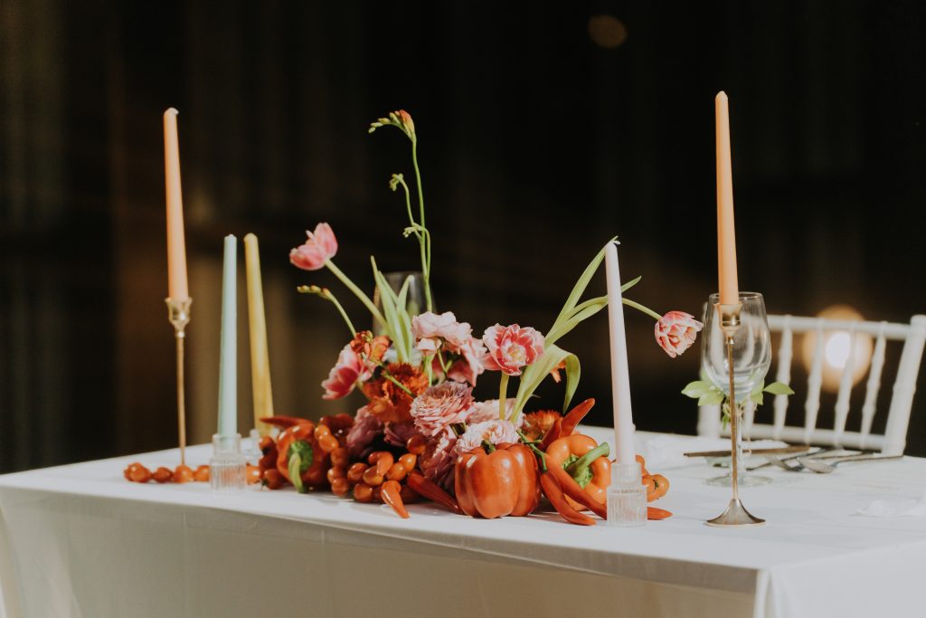 Another unique trait the couple shares is their love for spicy food. Wherever they travel, Catherine and Johnny make it a mission to try the local spicy dishes. To honor this spicy connection, we subtly incorporated chili peppers into the wedding decor—nestled among the flowers, embroidered on napkins, and even hanging playfully from centerpieces. It was unexpected, delightful, and a perfect nod to the heat and excitement of their love story. Guests laughed and pointed out the peppers, many of them remembering shared stories of the couple’s spice-loving adventures.