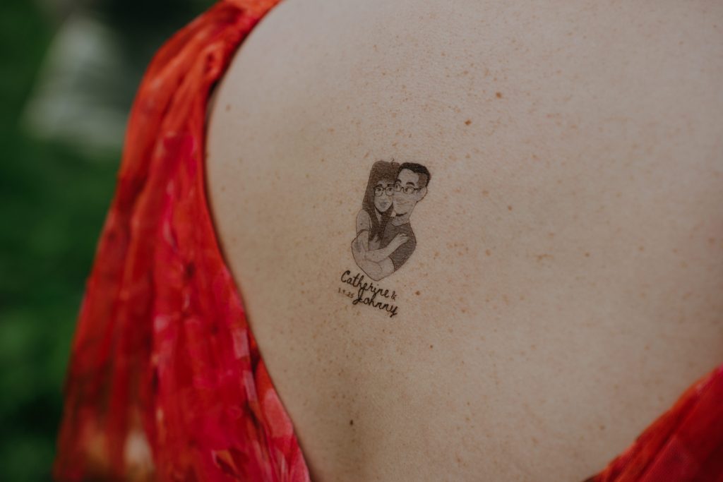 One of the couple’s shared loves is tattoo art. For them, tattoos are more than ink on skin—they’re expressions of identity, joy, and memories. To share this passion with their guests, we organized a temporary tattoo station, where everyone could get a custom-designed tattoo inspired by the couple. Friends and family proudly wore these small symbols, becoming walking canvases of love, unity, and fun.