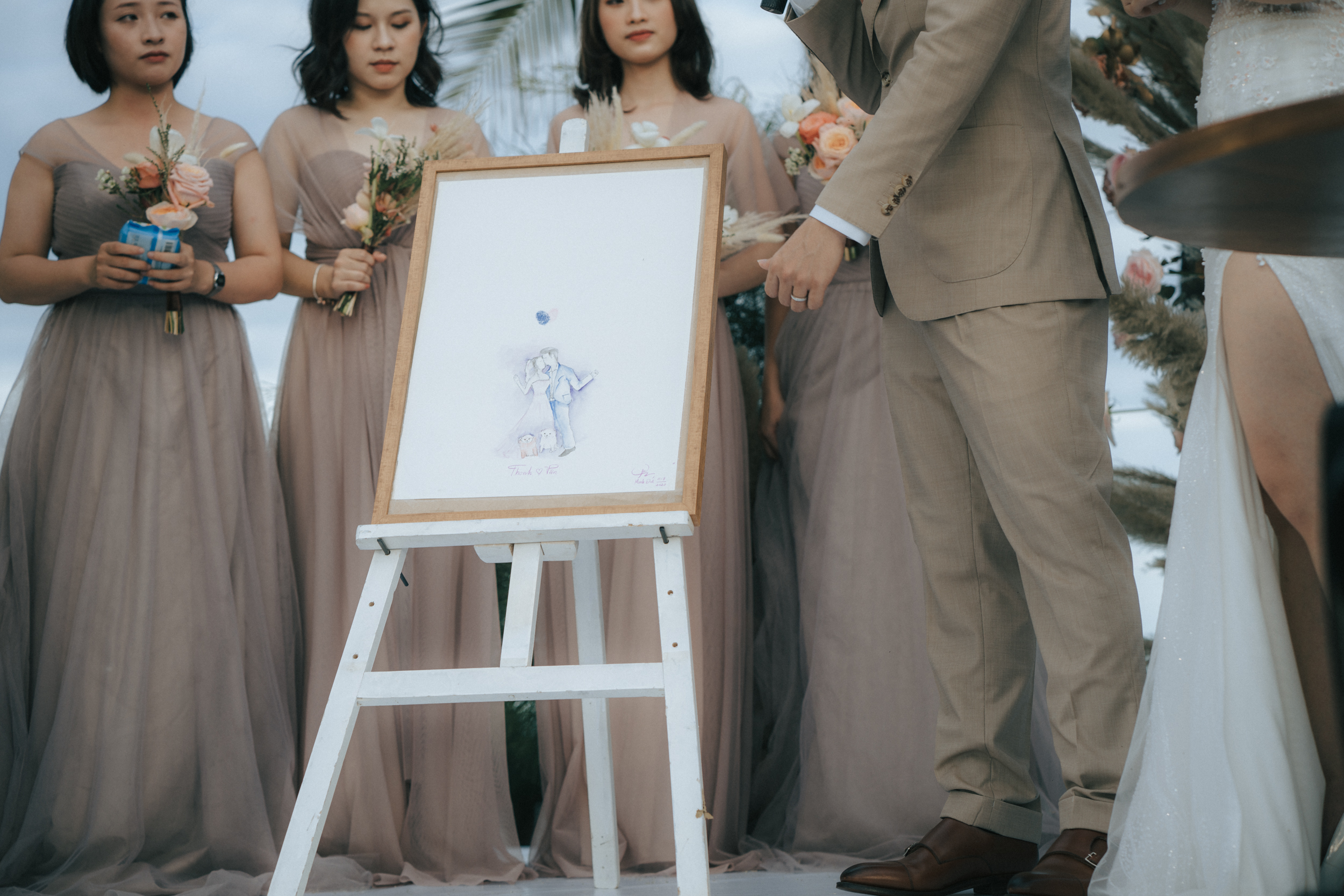 Đây là một nghi lễ mang rất nhiều màu sắc nghệ thuật, cô dâu chú rể có thể cùng nhau tạo ra một tác phẩm nghệ thuật bằng cách vẽ trên chất liệu giấy hoặc vải canvas. (có thể được trang trí bằng tên và ngày cưới của hai người.)