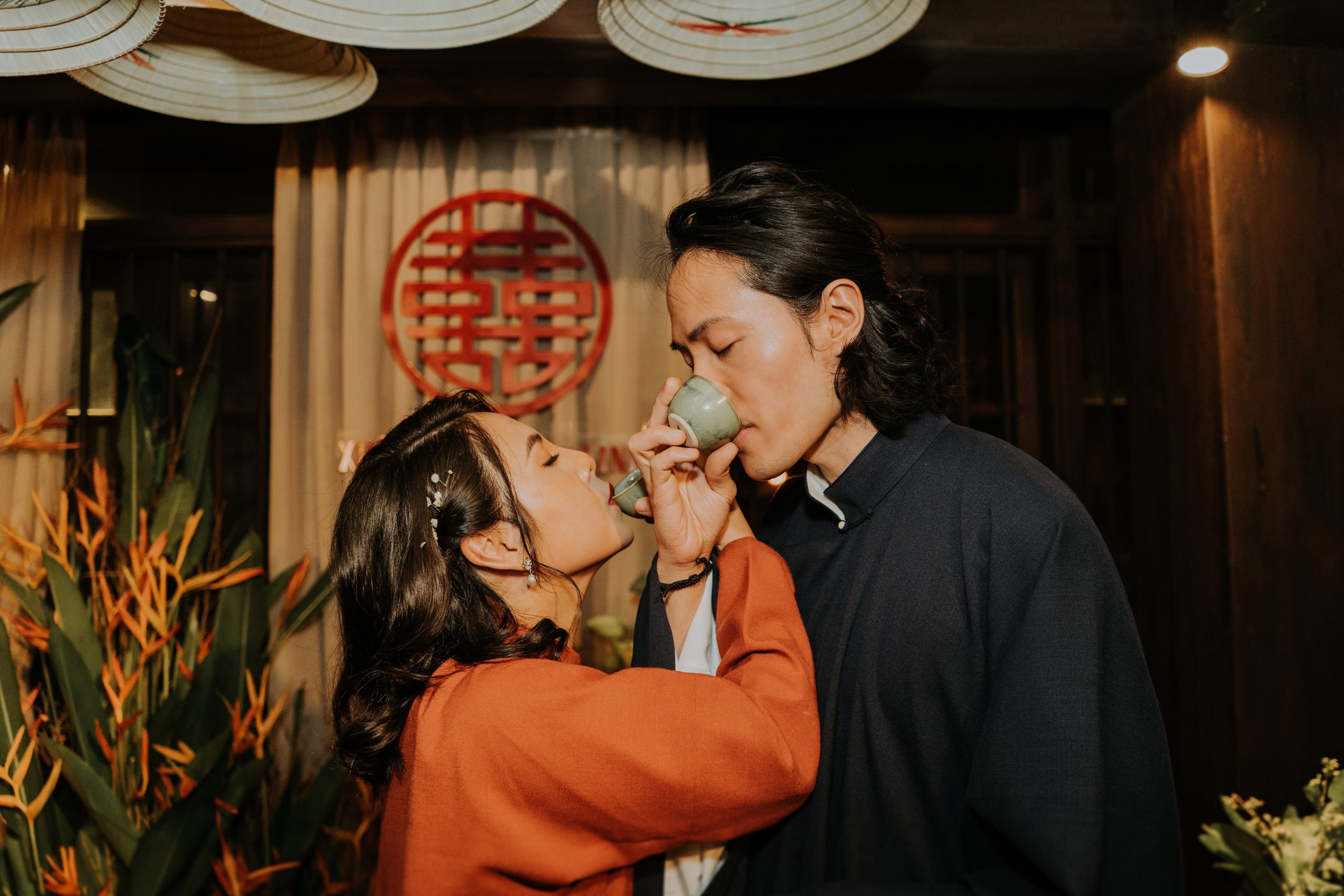 – Uống rượu giao bôi: Cùng nhau uống một chén rượu giao bôi trước tất cả quan khách.