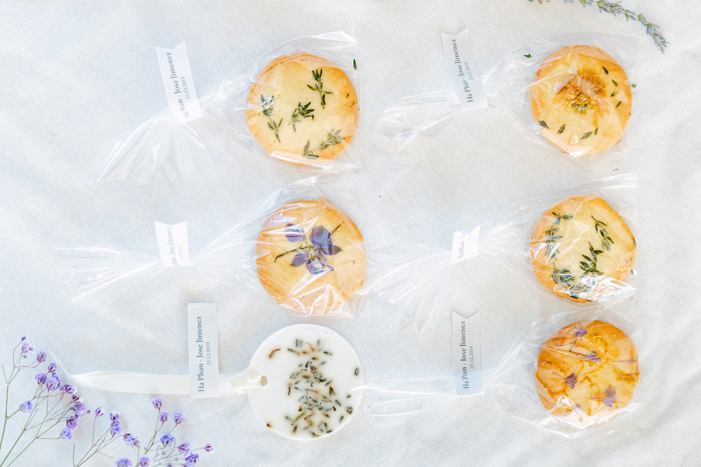 Giữ được tính nguyên bản về ý nghĩa chia sẻ may mắn giống như truyền thống tặng quà trên thế giới, những chiếc bánh quy ngọt ngào bạn tặng cho khách mời nghe đơn giản nhưng lại đủ tinh tế và đẹp mắt nếu biết kết hợp màu sắc “tông xoẹt tông” với đám cưới của bạn. Thậm chí bạn còn có thể tự tay nướng bánh và tạo hình cho đậm màu sắc cá nhân.